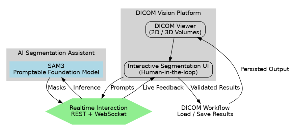 In D/Vision Lab, abbiamo integrato SAM3 come componente on-prem all’interno della piattaforma DICOM Vision.